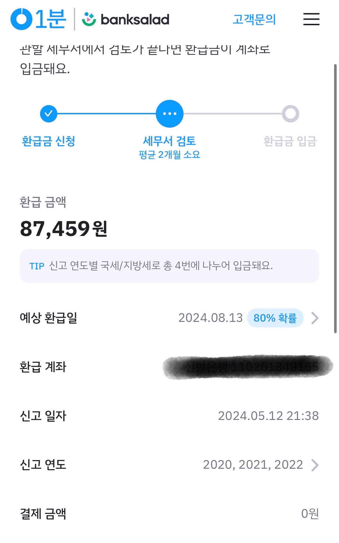 생각하지도 못했던 환급액이 발생되어