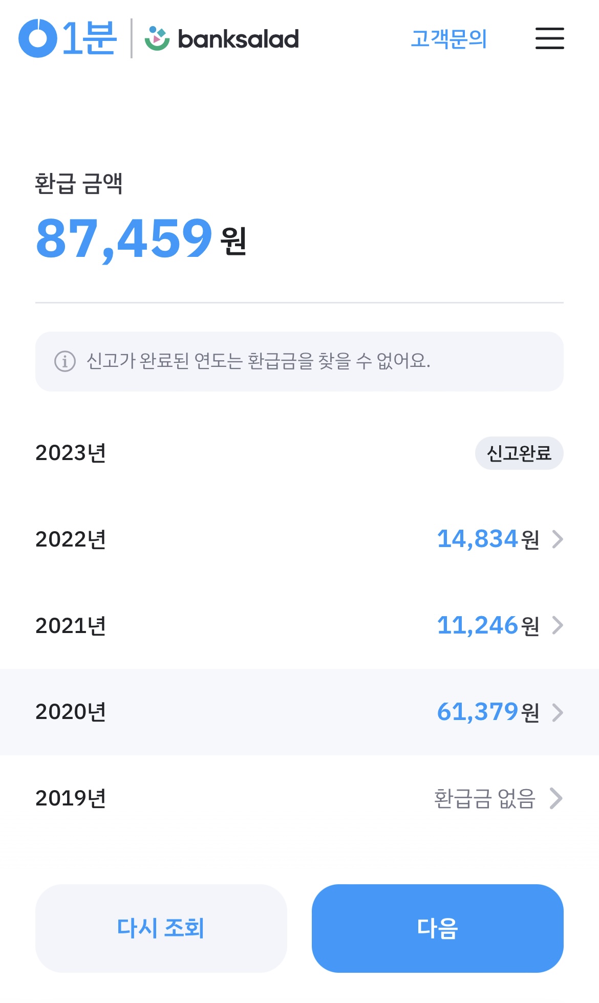 그래도 덕분에 총 5년치 환급액을 조회해보고