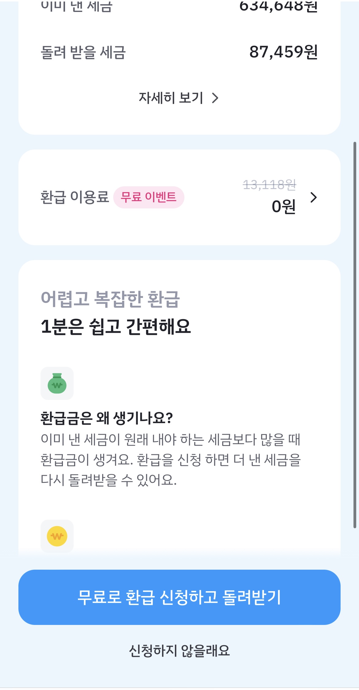 환급신청을 할 수 있는 편리한 앱!