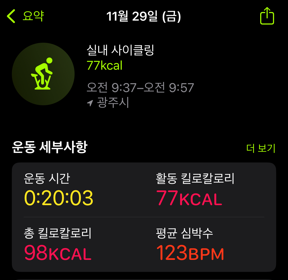공복운동 실내사이클 20분