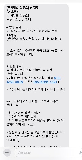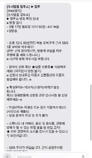 [컬투쇼 방청 안내]라고 문자가 왔고,
