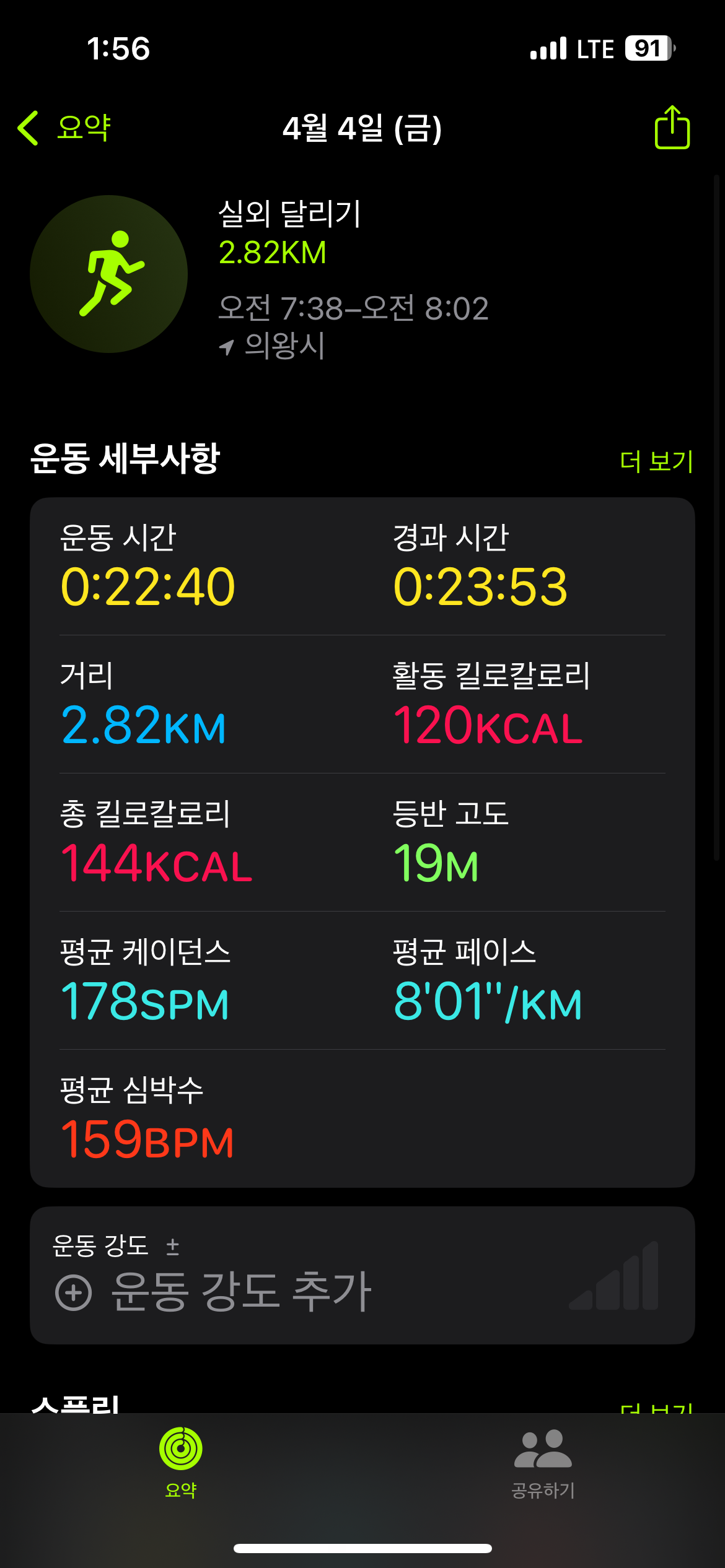 평균 심박수는 올라갔넹